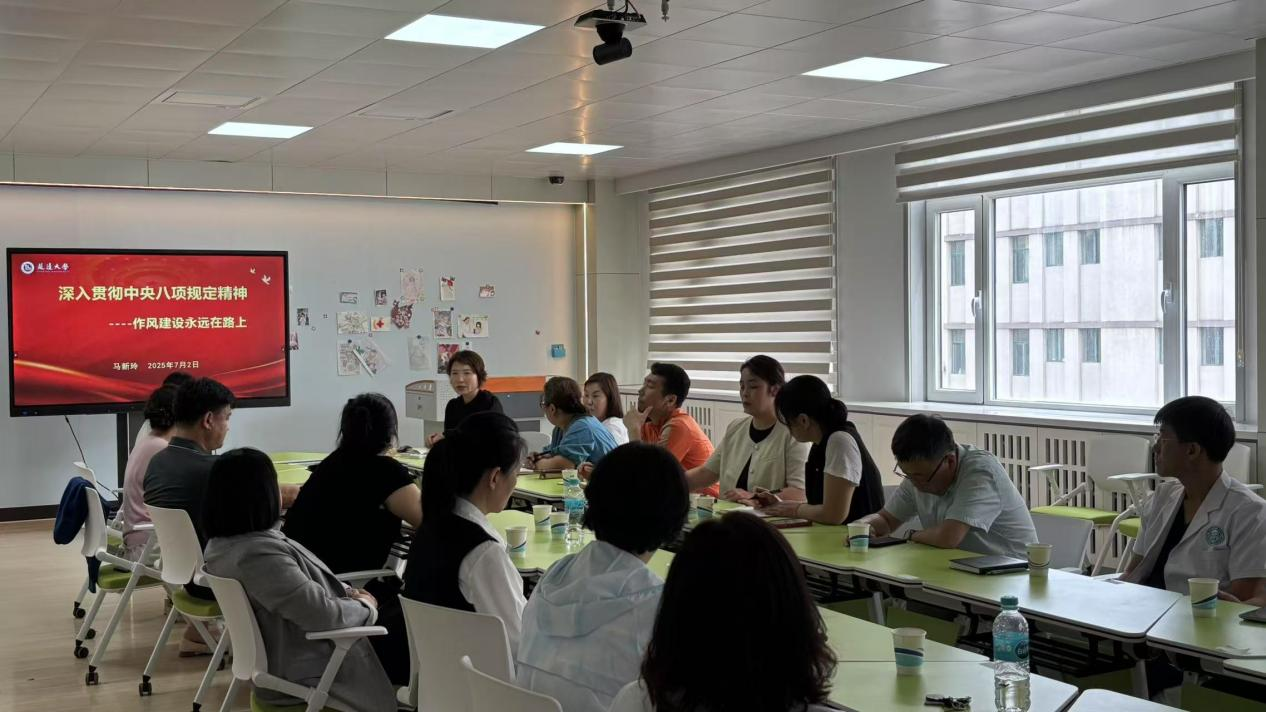 马新玲指出,要学习党的十八大以来深入贯彻中央八项规定精神的成效和经验,以钉钉子精神打好作风建设攻坚战持久战。通过剖析违反中央八项规定精神典型案例,深化以案为鉴、以案明纪、以案说法、以案正风,她结合自身工作经历,分享了基层作风转变带来的切实感受,从制度保障、思想引领等维度,分析中央八项规定取得成效的深层原因。马新玲强调教育领域是作风建设的重要阵地,护理专业教师更应主动作为,要结合护理学科特点,以严谨治学的态度培养学生专业素养,以清正廉洁的作风传递职业精神,将党的建设工作与“一流学科”建设和学校事业高质量发展紧密结合。