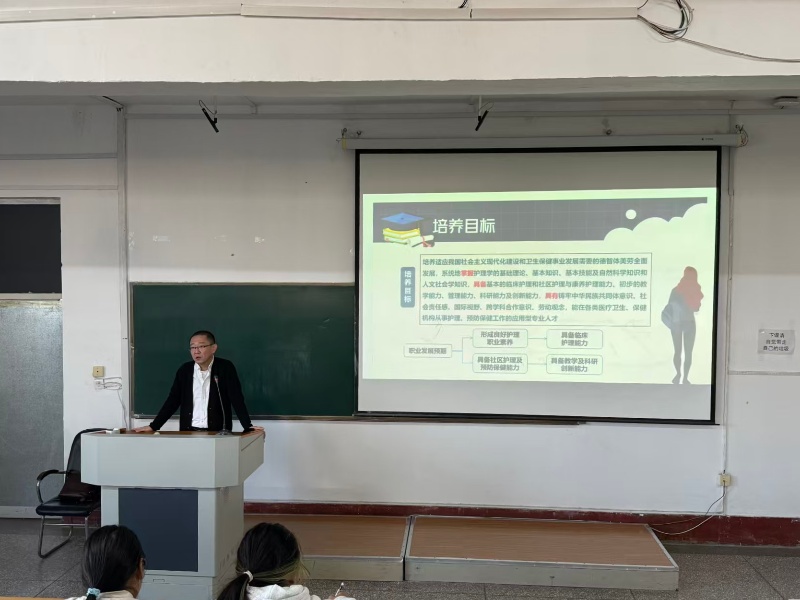 活动伊始,教务科研办公室主任朴龙范为新生介绍了护理学专业概况与人才培养体制,清晰梳理了专业“以临床护理为核心、兼顾区域健康服务”的定位,助力新生初步建立对专业的认知,明确护理专业的就业方向。随后,仉智君老师围绕学科教学计划展开讲解,详细解读课程设置、学分要求,以及创新创业、技能训练、社会实践等第二课堂学分的获取方式,让新生对大学学业规划有了更清晰的脉络。