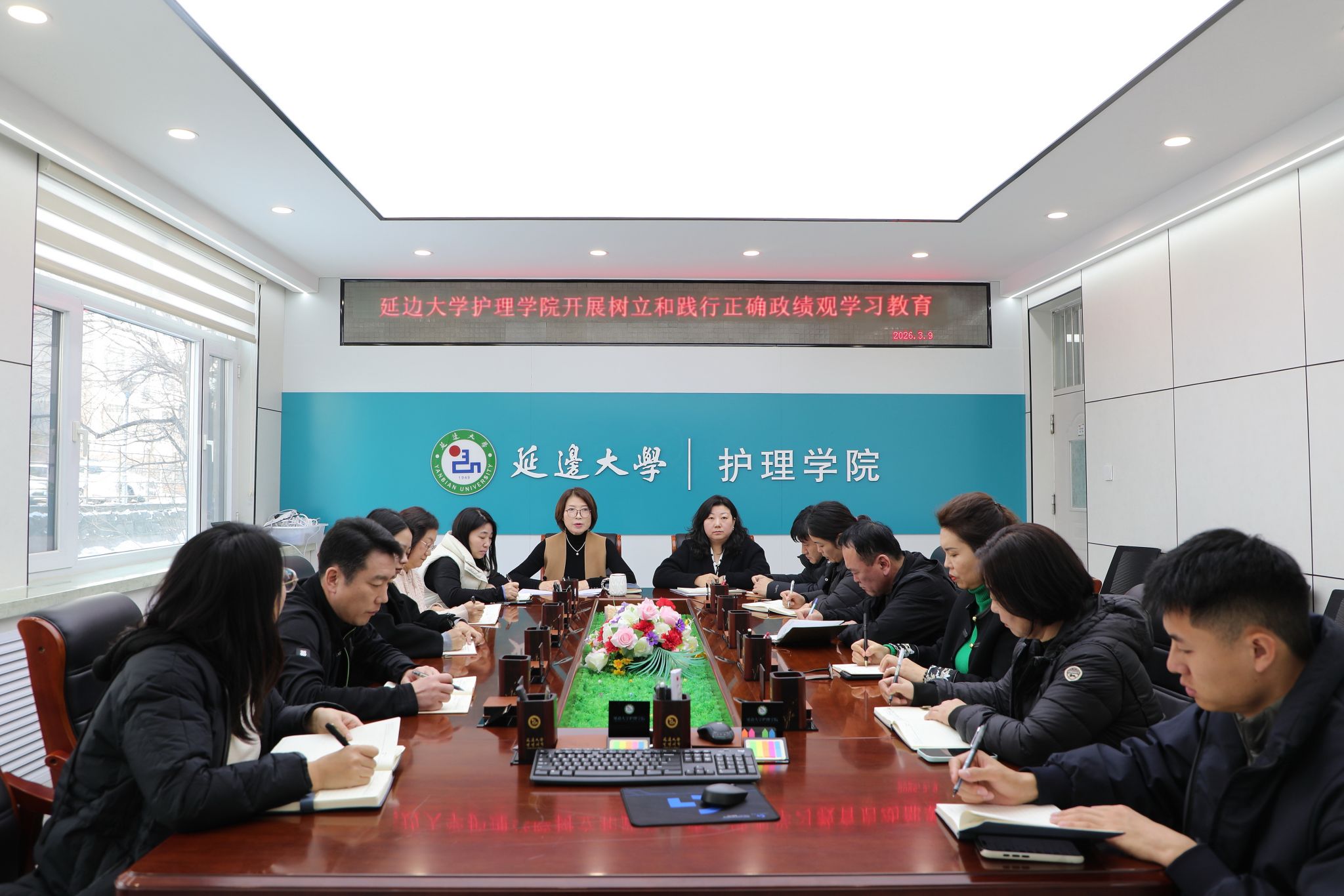 3月9日下午,延边大学护理学院在学院会议室召开党的建设工作领导小组(扩大)会议暨树立和践行正确政绩观学习教育。学院党委书记马新玲主持会议并讲话。