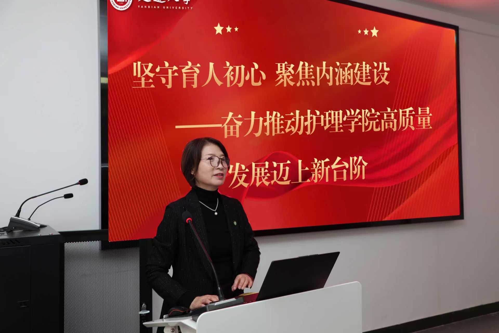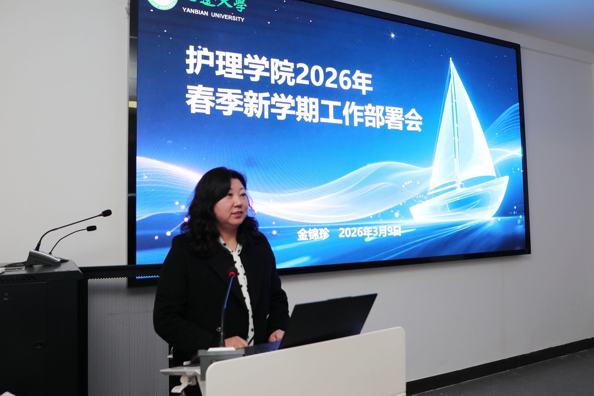 院长金锦珍全面总结了2025年学院目标任务完成情况,并对2026年目标任务分配做出系统部署。针对护理学科发展实际与行业需求变化,她对新学期重点工作提出几点要求:一是攻坚科研创新突破,聚焦学科特色方向,对照指标体系查漏补缺、整合资源;二是抓实学生成长服务,精准开展考研指导、就业帮扶和毕业论文全程督导,密切关注学生心理健康,构建全方位育人体系;三是把握发展机遇与挑战,量化核心指标,引领学科发展。