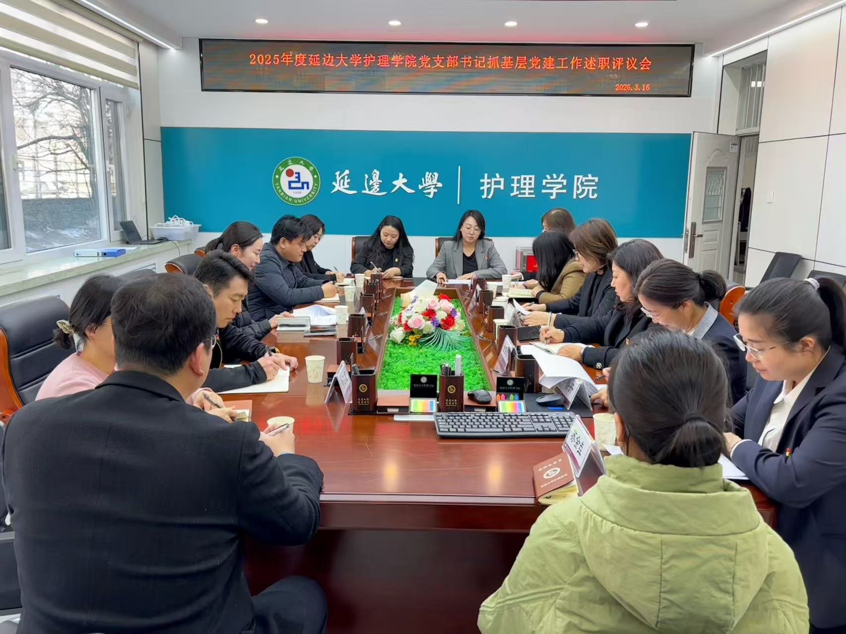 为深入学习贯彻党的二十大精神,落实省委教育工委和学校党委党建工作部署,压实党支部书记履职责任。3月16日,延边大学护理学院召开专题议党会议暨2025年度党支部书记抓基层党建工作述职评议会。工学院组织员金素月出席会议,学院党委委员、各党支部书记、党员代表参加会议,会议由护理学院党委书记马新玲主持。